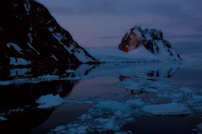 Das Boot durchquerte einen Teppich aus Eisbrocken, die im Dämmerlicht glitzerten. Constri stand über die Reling gebeugt und filmte die Eisstücke auf dem Wasser, in dem sich die tiefstehende Sonne spiegelte, und die rosa-golden leuchtenden Wolken.